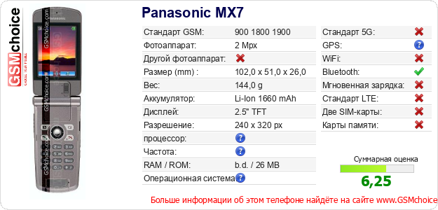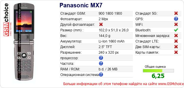Данные о телефоне Panasonic MX7 на Вашем сайте