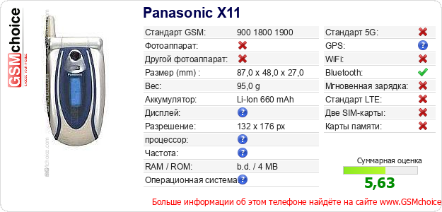 Данные о телефоне Panasonic X11 на Вашем сайте