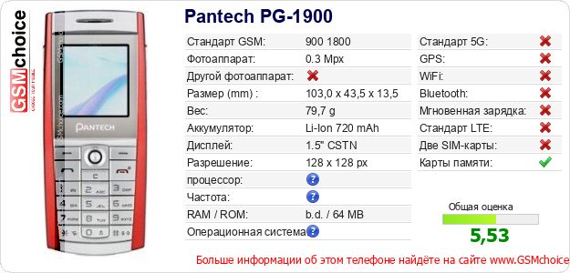 Данные о телефоне Pantech PG-1900 на Вашем сайте