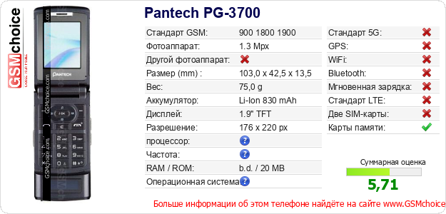 Данные о телефоне Pantech PG-3700 на Вашем сайте