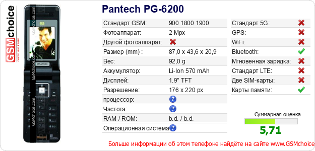 Данные о телефоне Pantech PG-6200 на Вашем сайте