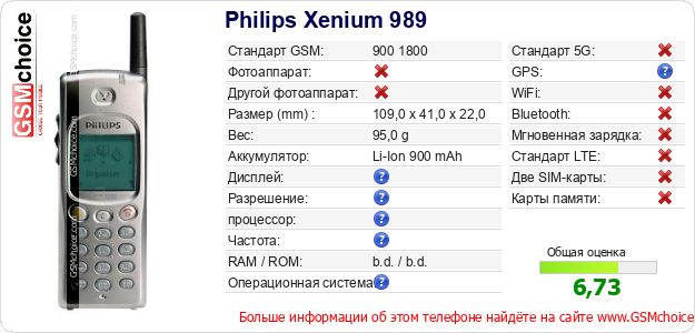 Данные о телефоне Philips Xenium 989 на Вашем сайте