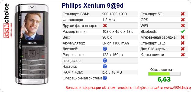 Данные о телефоне Philips Xenium 9@9d на Вашем сайте