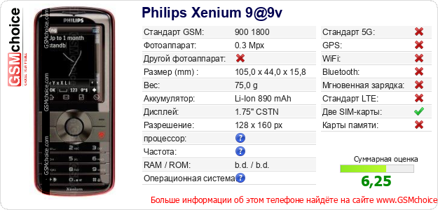 У Тебя есть свой сайт? Хочешь где-то разместить информацию о базовых данных мобильника Philips Xenium 9@9v ? Это запросто устроить. Достаточно скачать картинку или скопировать и разместить на соответствующем сайте нижерасположенный код:Размещение этого кода вызовет появление нижерасположенной картинки: