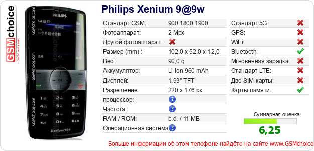 Данные о телефоне Philips Xenium 9@9w на Вашем сайте