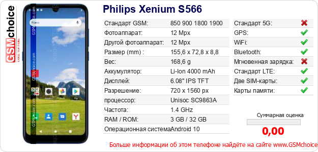 Данные о телефоне Philips Xenium S566 на Вашем сайте