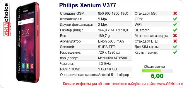 Данные о телефоне Philips Xenium V377 на Вашем сайте