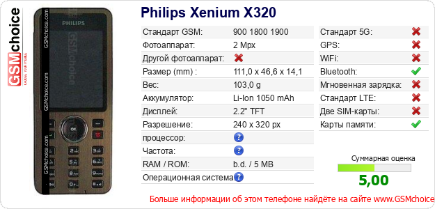 Данные о телефоне Philips Xenium X320 на Вашем сайте