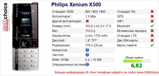 Данные о телефоне Philips Xenium X500 на Вашем сайте