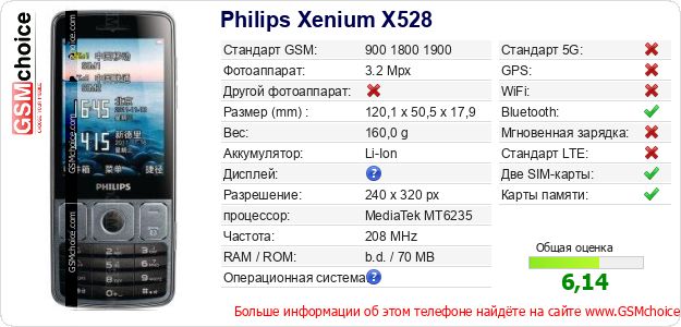 Данные о телефоне Philips Xenium X528 на Вашем сайте
