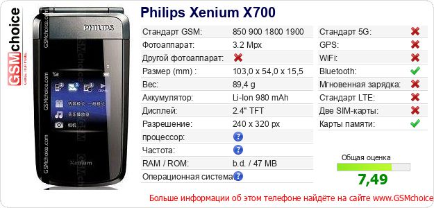 Данные о телефоне Philips Xenium X700 на Вашем сайте