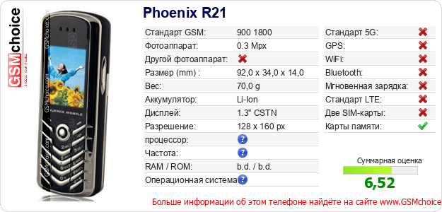Данные о телефоне Phoenix R21 на Вашем сайте