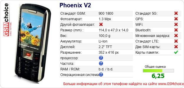 Данные о телефоне Phoenix V2 на Вашем сайте