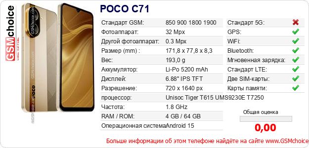 Данные о телефоне POCO C71 на Вашем сайте