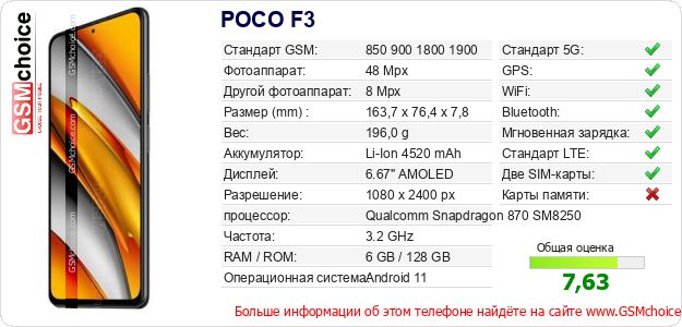 Данные о телефоне POCO F3 на Вашем сайте