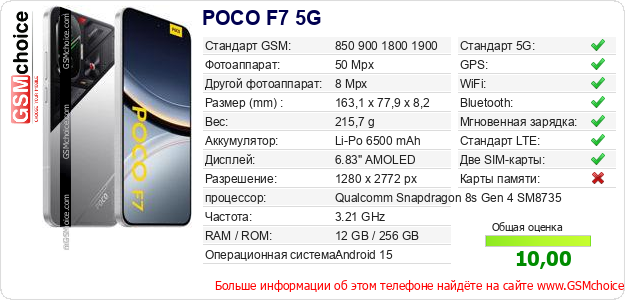 Данные о телефоне POCO F7 5G на Вашем сайте