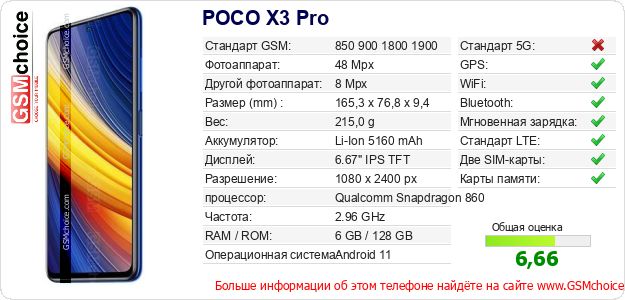 Данные о телефоне POCO X3 Pro на Вашем сайте