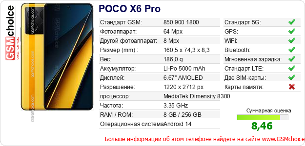 Данные о телефоне POCO X6 Pro на Вашем сайте