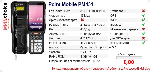 Данные о телефоне Point Mobile PM451 на Вашем сайте