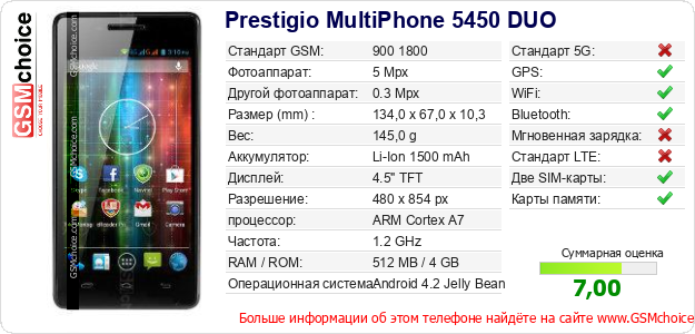 Данные о телефоне Prestigio MultiPhone 5450 DUO на Вашем сайте