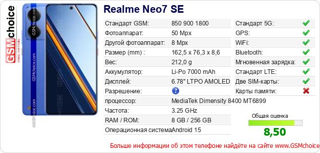 Данные о телефоне Realme Neo7 SE на Вашем сайте