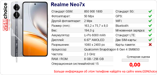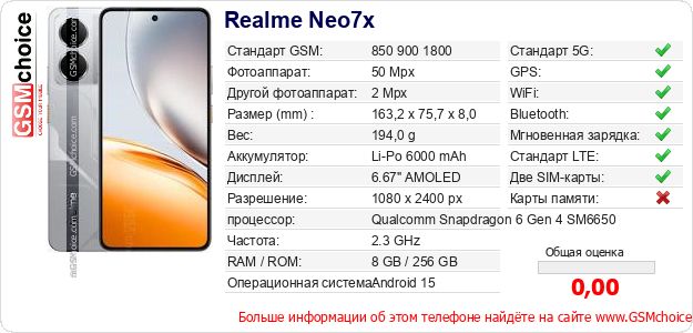 Данные о телефоне Realme Neo7x на Вашем сайте