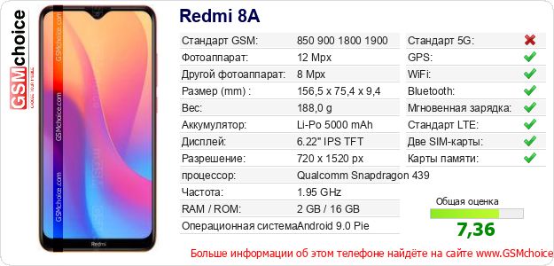 Данные о телефоне Redmi 8A на Вашем сайте