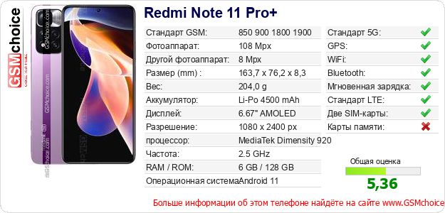 Данные о телефоне Redmi Note 11 Pro+ на Вашем сайте