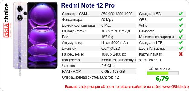 Данные о телефоне Redmi Note 12 Pro на Вашем сайте