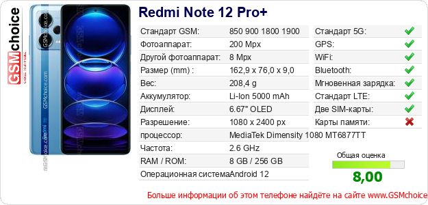 Данные о телефоне Redmi Note 12 Pro+ на Вашем сайте