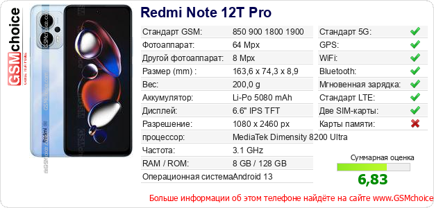 Данные о телефоне Redmi Note 12T Pro на Вашем сайте