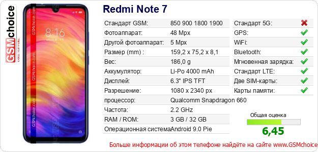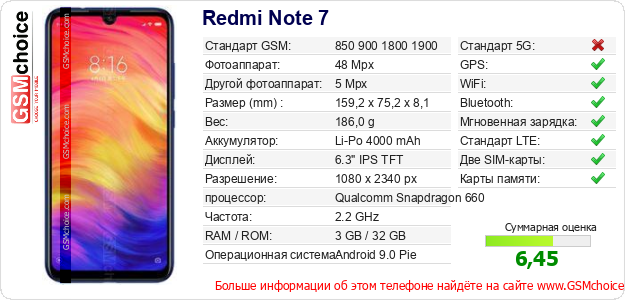 Данные о телефоне Redmi Note 7 на Вашем сайте