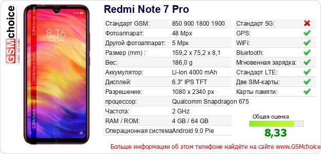 Данные о телефоне Redmi Note 7 Pro на Вашем сайте
