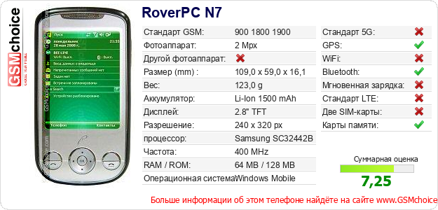 Данные о телефоне RoverPC N7 на Вашем сайте