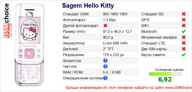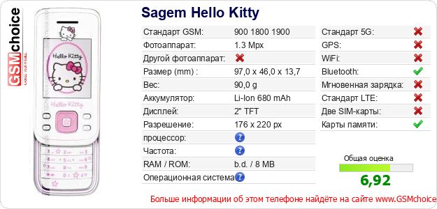 Данные о телефоне Sagem Hello Kitty на Вашем сайте