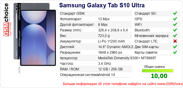 Данные о телефоне Samsung Galaxy Tab S10 Ultra на Вашем сайте