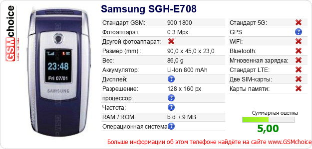 Данные о телефоне Samsung SGH-E708 на Вашем сайте
