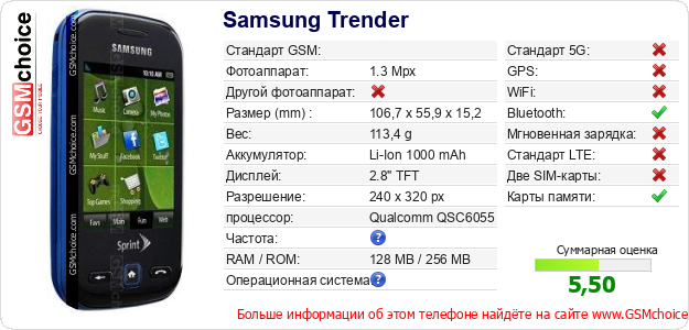 Данные о телефоне Samsung Trender на Вашем сайте
