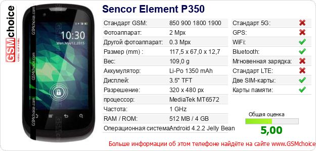 Данные о телефоне Sencor Element P350 на Вашем сайте