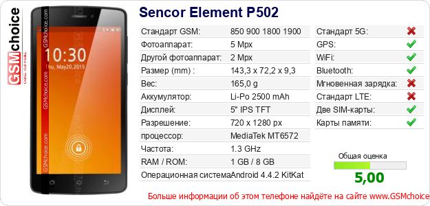 Данные о телефоне Sencor Element P502 на Вашем сайте