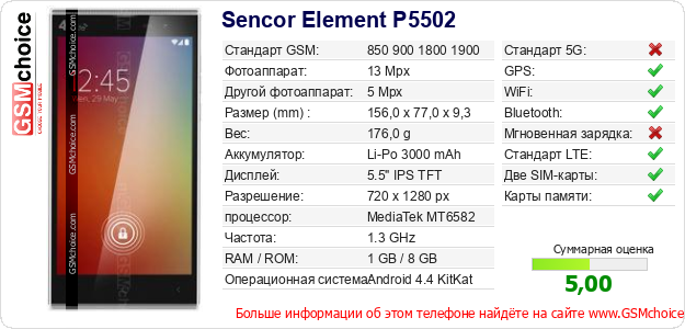 Данные о телефоне Sencor Element P5502 на Вашем сайте