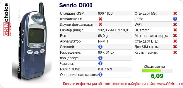 У Тебя есть свой сайт? Хочешь где-то разместить информацию о базовых данных мобильника Sendo D800 ? Это запросто устроить. Достаточно скачать картинку или скопировать и разместить на соответствующем сайте нижерасположенный код:Размещение этого кода вызовет появление нижерасположенной картинки:
