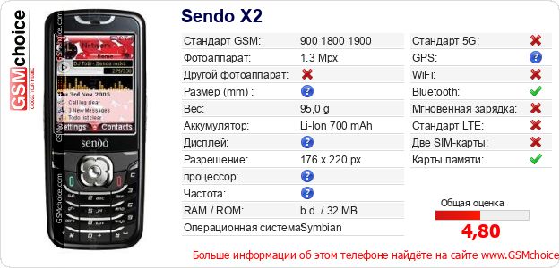 Данные о телефоне Sendo X2 на Вашем сайте