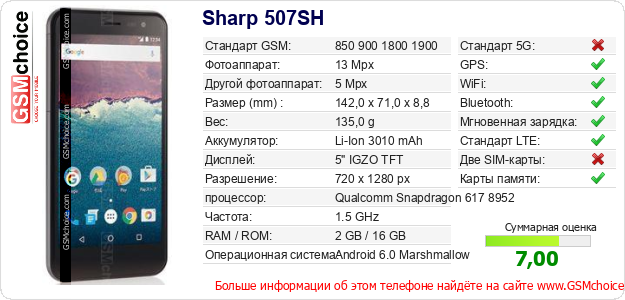 Данные о телефоне Sharp 507SH на Вашем сайте