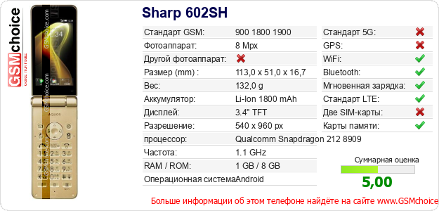 Данные о телефоне Sharp 602SH на Вашем сайте