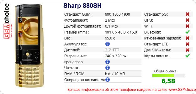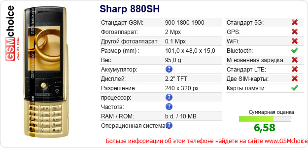 Данные о телефоне Sharp 880SH на Вашем сайте
