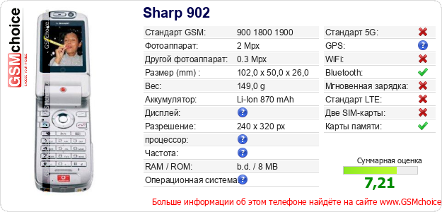 У Тебя есть свой сайт? Хочешь где-то разместить информацию о базовых данных мобильника Sharp 902 ? Это запросто устроить. Достаточно скачать картинку или скопировать и разместить на соответствующем сайте нижерасположенный код:Размещение этого кода вызовет появление нижерасположенной картинки: