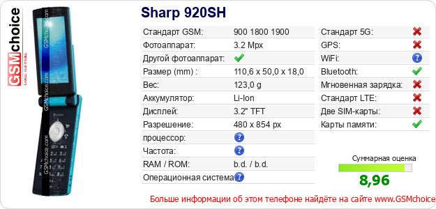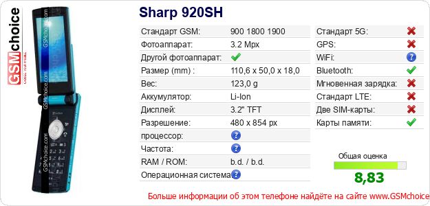 Данные о телефоне Sharp 920SH на Вашем сайте