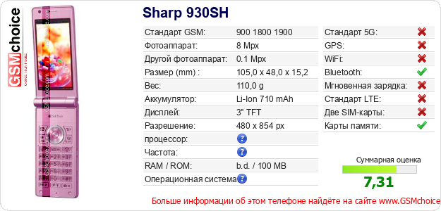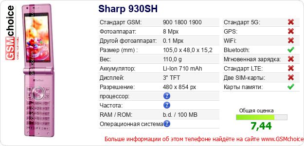 Данные о телефоне Sharp 930SH на Вашем сайте