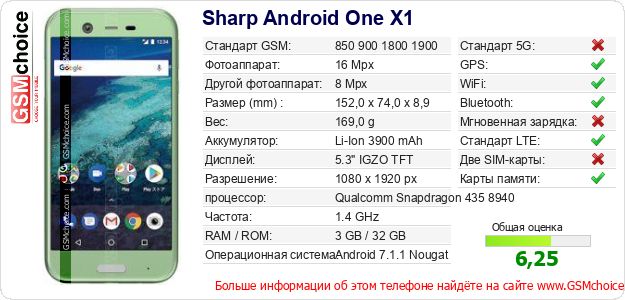 Данные о телефоне Sharp Android One X1 на Вашем сайте
